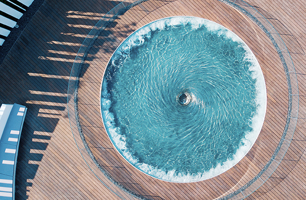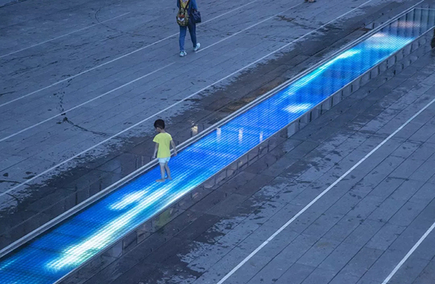 水本無形,它的物理特性讓它能輕易地跟隨容器而呈現(xiàn)不同的面貌。獨(dú)特的延展性使得水能呈現(xiàn)無以計(jì)數(shù)的不同效果。燈光的布置,介質(zhì)的紋理,顏色和動態(tài)都能給水帶來無窮的變化。
